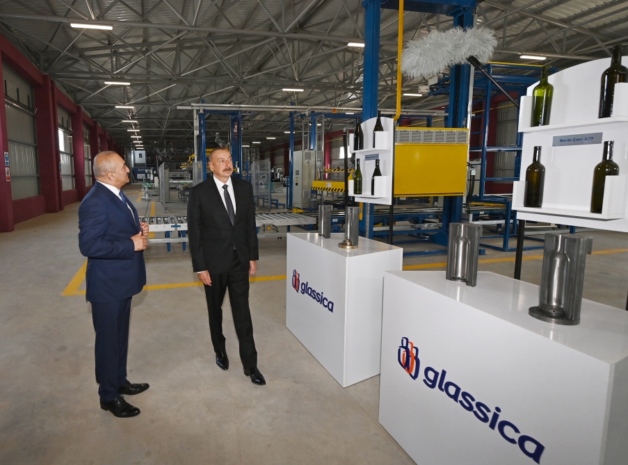Bildirildi ki, təməli 2021-ci il yanvarın 18-də dövlətimizin başçısı tərəfindən qoyulan, ümumi investisiya dəyəri 20 milyon manatdan çox olan müəssisədə il ərzində 90 milyon ədəd müxtəlif çeşidli rəngli şüşə tara məhsulları (butulka) istehsal olunacaq. Müəssisədə istehsal edilən məhsullar daxili tələbatı tam ödəməklə yanaşı, xarici ölkələrə də ixrac olunacaq. Sənaye Parkının 2,6 hektar ərazisində inşa edilmiş müəssisədə 160 nəfər daimi işlə təmin ediləcək. Müəssisənin layihələndirilməsi və qabaqcıl texnologiyalarla təchiz olunması Almaniyanın dünyada şüşəəritmə texnologiyaları sahəsində 135 ildən çox təcrübəyə malik “HORN Glass Industries AG” şirkəti tərəfindən həyata keçirilib.