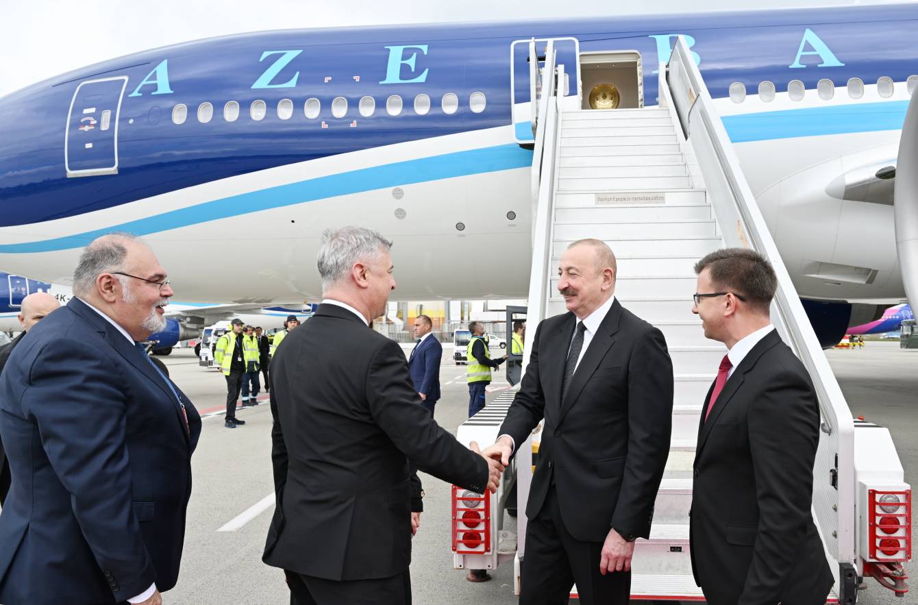 Azərbaycan Prezidentini Macarıstanın Avropa İttifaqı məsələləri üzrə naziri Yanoş Boka və digər rəsmi şəxslər qarşıladılar.