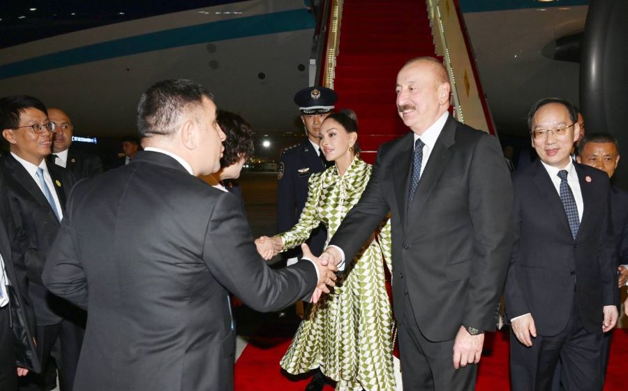 Tiencin şəhərinin Binxay Beynəlxalq Hava Limanında dövlətimizin başçısının şərəfinə fəxri qarovul dəstəsi düzülmüşdü.