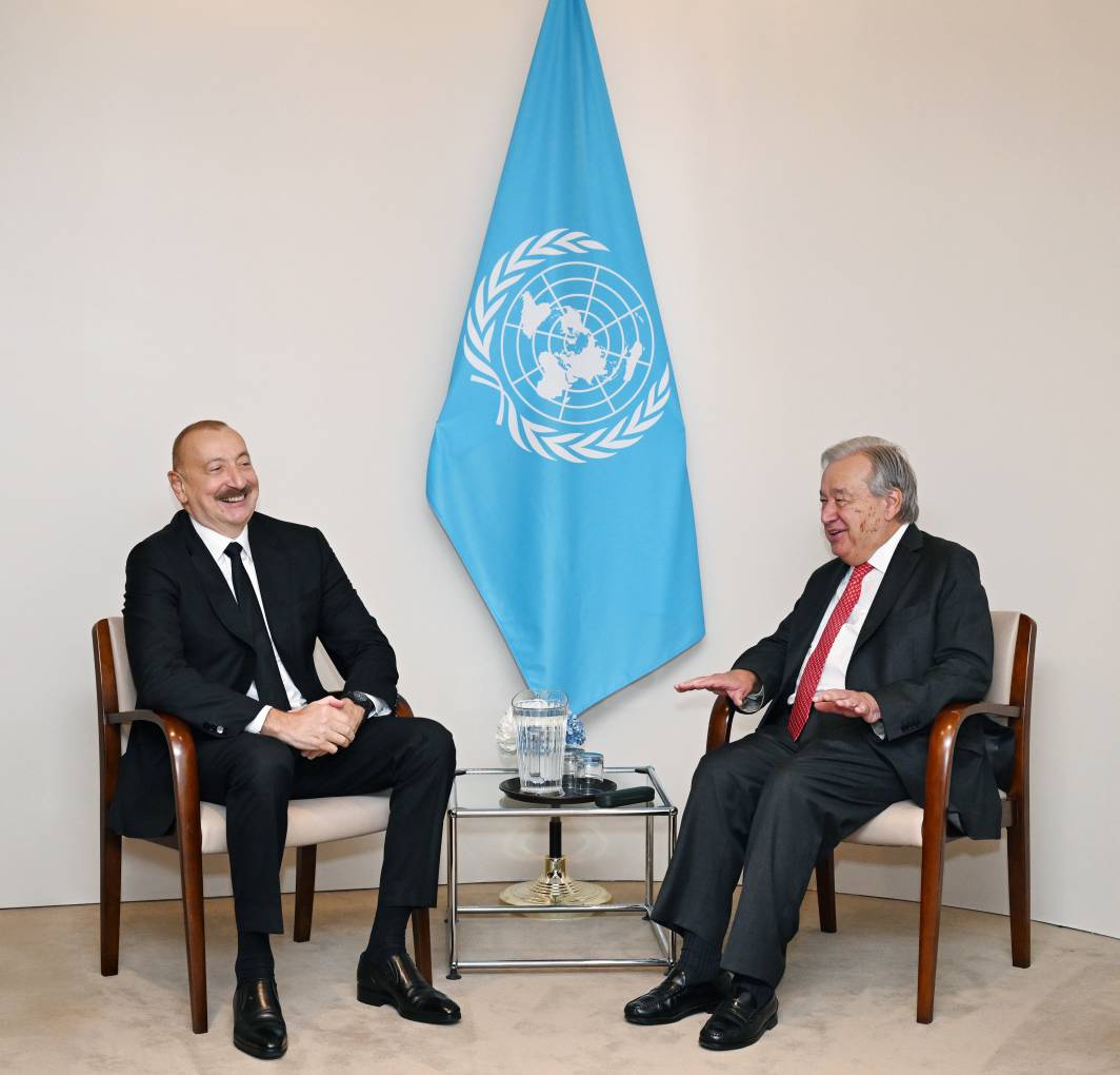 Sonra Azərbaycan Prezidenti İlham Əliyev və BMT-nin Baş katibi Antonio Quterreş birgə foto çəkdirdilər.