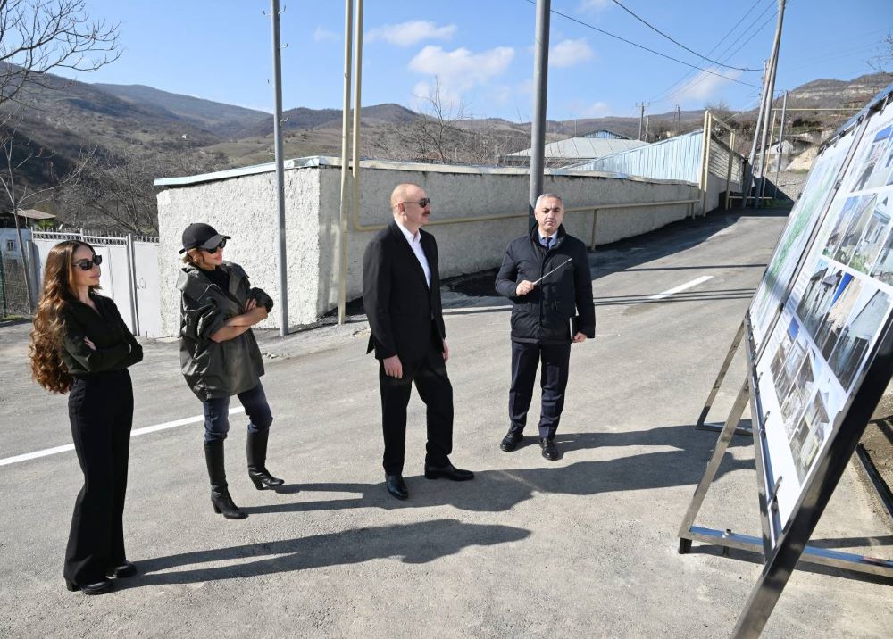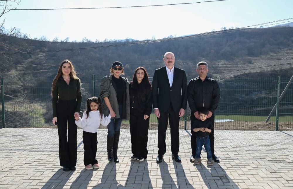 Sonra Prezident İlham Əliyev, birinci xanım Mehriban Əliyeva və qızları Arzu Əliyeva kəndə köçmüş Əmrah Sahiblinin evində oldular.