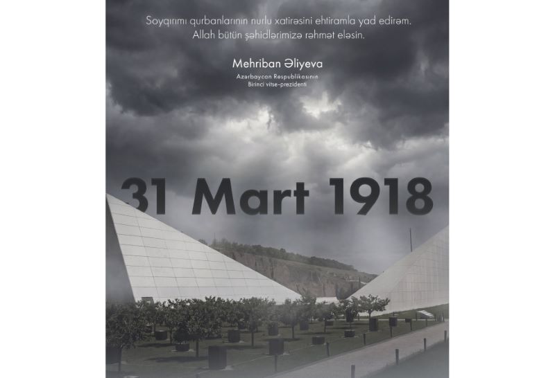- Azərbaycan Respublikasının Birinci vitse-prezidenti Mehriban Əliyeva sosial şəbəkə hesablarında 31 Mart - Azərbaycanlıların Soyqırımı Günü ilə bağlı paylaşım edib.