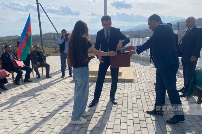 Açarların təqdim olunması mərasimində Xankəndi şəhərində, Ağdərə və Xocalı rayonlarında Azərbaycan Respublikası Prezidentinin xüsusi nümayəndəliyinin əməkdaşları, Qaçqınların və Məcburi Köçkünlərin İşləri üzrə Dövlət Komitəsinin rəsmiləri iştirak ediblər.