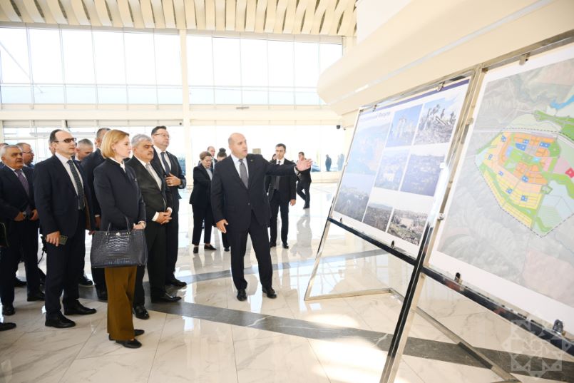 Özbəkistan Prezidenti Şavkat Mirziyoyev tərəfindən özbək xalqı adından hədiyyə olaraq inşa edilən Füzuli şəhər Mirzə Uluqbəy adına tam orta məktəb, Qazax xalqının Azərbaycan xalqına hədiyyəsi olan Kurmanqazı adına Uşaq Yaradıcılıq Mərkəzi haqqında da məlumat verilib. Qeyd edilib ki, Füzuli şəhərində hazırda mərkəzi xəstəxana və Peşə Təhsil Kompleksi tikilir. Dövlətyarlı kəndinin tikintisi isə sürətlə davam edir. Füzuli şəhərində ikinci və üçüncü yaşayış komplekslərinin tikintisinə bu ilin sonu və gələn ilin əvvəlində start veriləcək. Yaxın vaxtlarda şəhərin mərkəzi parkının tikintisinə başlanılacaq. Pirəhmədli kəndinin tikintisinə isə yeni başlanılıb və 2026-cı ilin sonuna kimi tamamlanacaq.