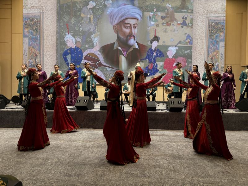 “Navruz” Milli Rəqs Ansamblı, Yunus Rəcəbi adına “Maqom” ansamblı, eləcə də tanınmış müğənnilər rəngarəng musiqi və rəqs nömrələri təqdim ediblər. Özbəkistanın Əməkdar artisti Mohiçehra Şomurodovanın ifasında səslənən “Küçələrə su səpmişəm” Azərbaycan xalq mahnısı alqışlarla qarşılanıb. Həmçinin dahi özbək şairi Əlişir Nəvainin “Xəmsə”sindən “Fərhad və Şirin”, “Leyli və Məcnun”, “Yeddi gözəl”, “İskəndərnamə” əsərlərindən ilhamlanaraq hazırlanan musiqili-xoreoqrafik kompozisiyalar tamaşaçıların könlünü oxşayıb. (AZƏRTAC)