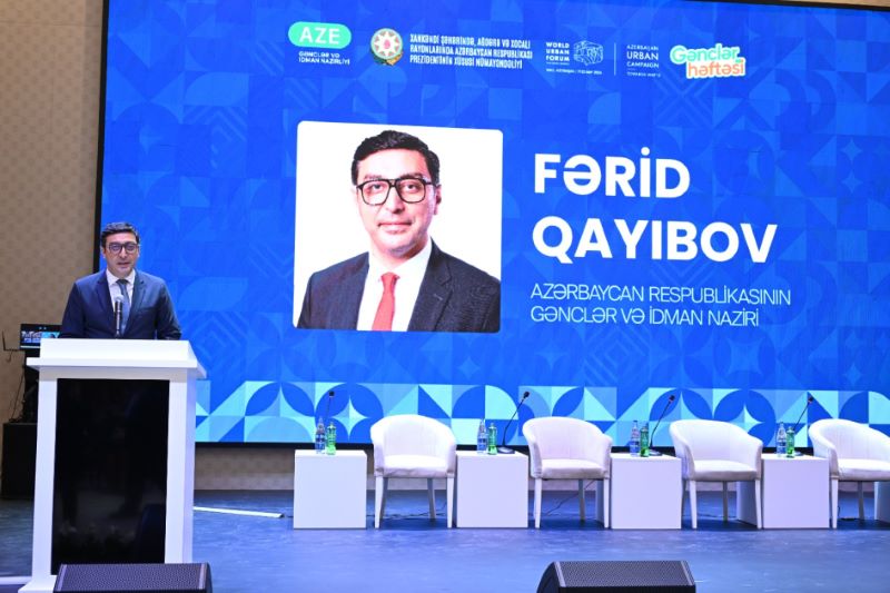 Daha sonra çıxış edən gənclər və İdman naziri Fərid Qayıbov isə bu il Azərbaycan Gənclərinin Forumunun 30 illiyinin qeyd olunduğundan və forumun azad olunmuş Xankəndi şəhərində keçirilməsinin xüsusi əhəmiyyət daşıdığından danışıb. Nazir azad edilmiş şəhər və rayonlarda beynəlxlaq tədbirlərin təşkil olunduğunu, Qarabağ bölgəsinin müasir şəhərsalma prinsipləri əsasında sürətlə yenidən qurulduğunu da xüsusi vurğulaylb. O, həmçinin qeyd edib ki, bu il Goranboy şəhəri “Gənclər paytaxtı” elan olunub və bu münasibətlə silsilə tədbirlər keçiriləcək.