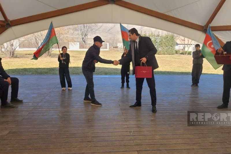 Açarların təqdim edilməsi mərasimində Qaçqınların və məcburi köçkünlərin işləri üzrə Dövlət Komitəsi, Xankəndi şəhərində, Ağdərə və Xocalı rayonlarında Azərbaycan Respublikası Prezidentinin xüsusi nümayəndəliyi, həmçinin. Xankəndi şəhərində, Ağdərə və Xocalı rayonlarında Bərpa Tikinti və İdarəetmə Xidmətinin əməkdaşları iştirak ediblər. (Report)