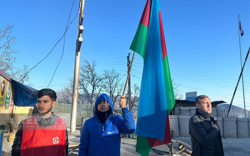 Eyni zamanda ekofəallar yolun hər iki tərəfində, hərəkətə maneə törətmədən üzərində Azərbaycan, rus və ingilis dillərində yazılmış plakatlar qaldırıb, şüarlar səsləndirirlər.