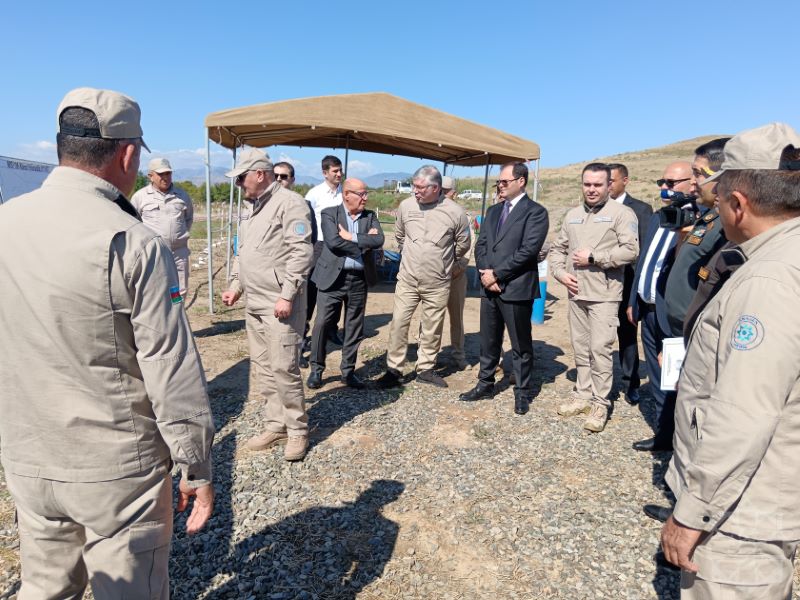Səfər iştirakçıları həyata keçirilən layihələrin gedişatını, o cümlədən aşkar olunan mina və partlamamış hərbi sursatların partlayış yolu ilə zərərsizləşdirilməsi prosesini müşahidə ediblər.