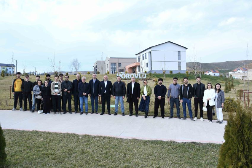 Ağacəkmə aksiyasında iştirak edən ADAU-nun professor-müəllim heyəti və tələbələr əvvəlcə kəndin infrastrukturu ilə tanış olublar.