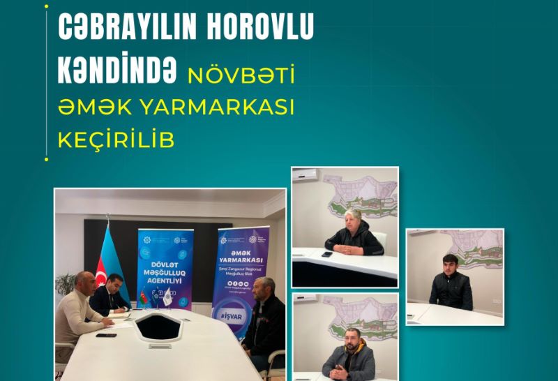 Nazirliyin İctimaiyyətlə əlaqələr şöbəsindən verilən məlumata görə, Cəbrayıl, Qubadlı və Zəngilan rayonlarında Bərpa, Tikinti və İdarəetmə Xidmətinin Cəbrayılın Horovlu kəndindəki ofisində keçirilmiş yarmarkada Horovlu kəndinə köç etmiş sakinlər də iştirak ediblər.