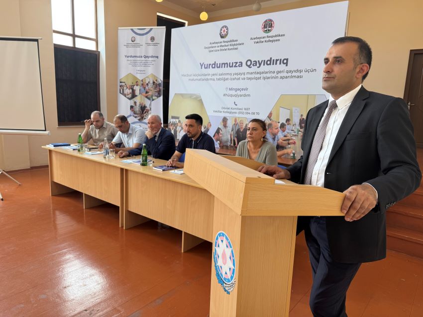 “Konstitusiya və Suverenlik İli” çərçivəsində Azərbaycan Respublikası Qaçqınların və Məcburi Köçkünlərin İşləri üzrə Dövlət Komitəsinin Azərbaycan Respublikası Vəkillər Kollegiyası ilə birgə, “Yurdumuza Qayıdırıq” devizi altında keçirdiyi tədbirdə məqsəd keçmiş məcburi köçkünlərin hüquqi biliklərini artırmaq və onların işğaldan azad edilmiş ərazilərə qayıdışla bağlı hüquqi prosedurlar barədə məlumatlandırılması olub.