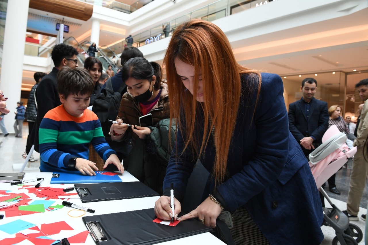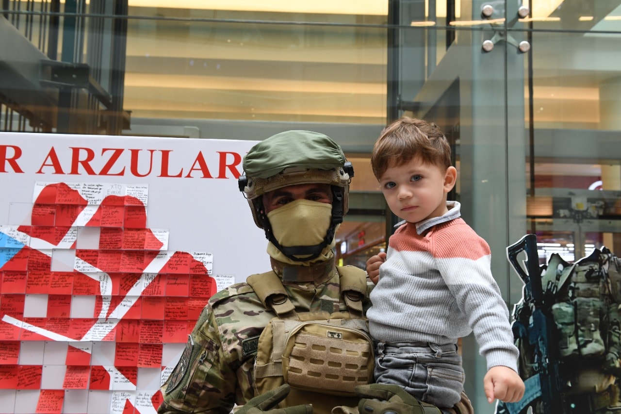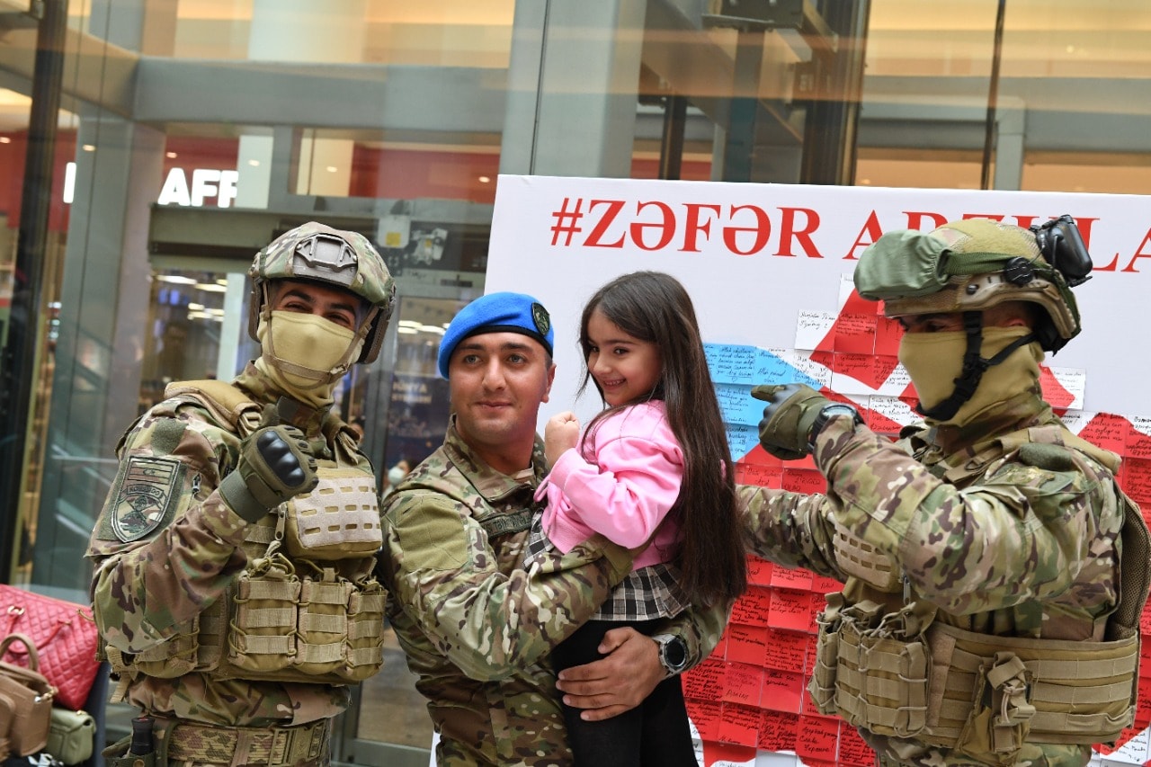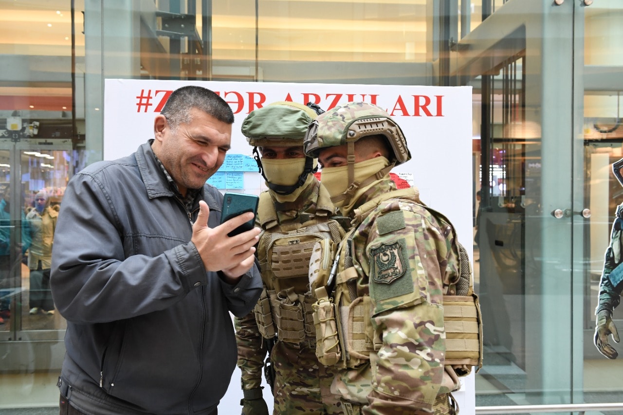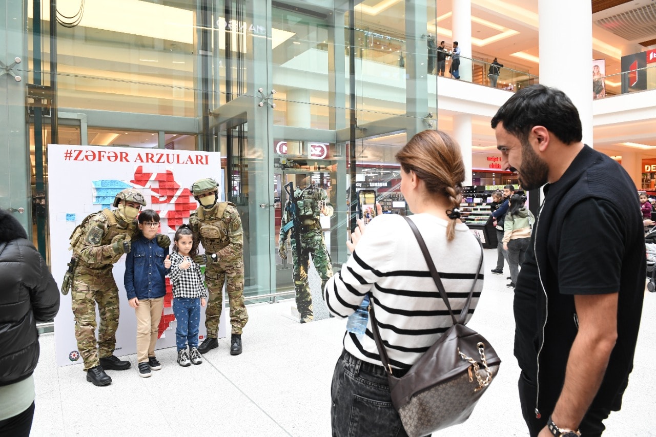 “Gənclik Mall”a gələnlər, xüsusilə, uşaqlar aksiyaya böyük maraq göstərir, lövhənin önündə, qəhrəman Ordumuzun əsgərləri ilə şəkil çəkdirirlər.