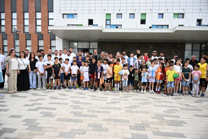 Komanda burada böyük coşqu ilə qarşılanıb. Şəhər sakinləri ilə görüşdə, xüsusilə uşaqlar Q.Qurbanov və futbolçularla şəkil çəkdirmək üçün sıraya düzülüblər.