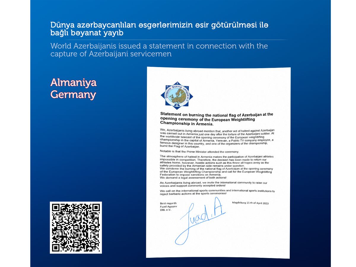 Diaspora Komitəsindən verilən məlumata görə, Komitənin və Liqanın adından beynəlxalq təşkilatlara ünvanlanan bəyanatda bu yolverilməz hadisə “Azərbaycan əsgərinə verilən işgəncədən cəmi bir gün sonra Ermənistan tərəfindən Azərbaycana qarşı etnik zəmində kök salmış nifrətin təcəssümü olan növbəti akt” kimi dəyərləndirilib.