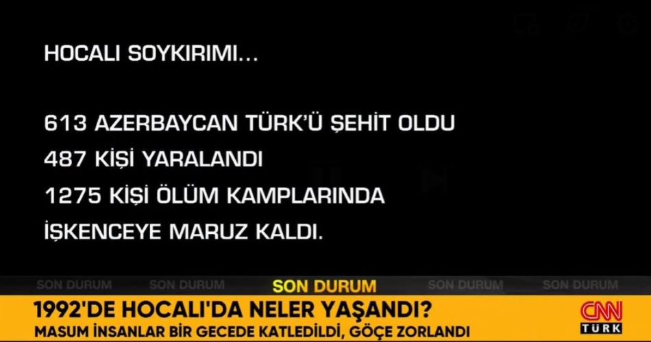 Aparıcı Fulya Öztürk telekanalın çoxmilyonlu tamaşaçı auditoriyasını ermənilərin Azərbaycanın dinc sakinlərinə qarşı törətdikləri vəhşiliklər barədə məlumatlandırıb.