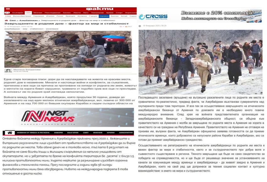Azərbaycanlı qaçqınların öz doğma yurdlarına repatriasiyasının həyata keçirilməsinin regionda sülh və sabitlik, eləcə də xoşməramlı əməkdaşlıq və birgəyaşayış üçün mühüm amil olduğu yayılmış məlumatlarda xüsusi vurğulanır. (AZƏRTAC)