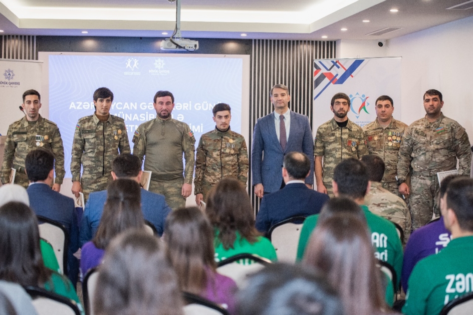 Gənclər Fondunun dəstəyi ilə "Böyük Qayıdış" Gənclər Təşkilatı tərəfindən Gənclər Gününə həsr olunmuş silsilə tədbirlər çərçivəsində təşkilatın fəaliyyətində aktivlik göstərən üzv gənclərin, gənc Vətən müharibəsi qazilərinin, Qayıdış Könüllülərinin və Təcrübə Proqramının iştirakçılarının təltifetmə mərasimi keçirilib.