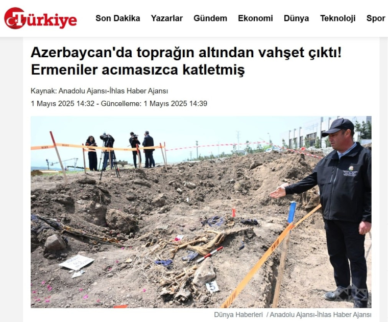 Qəzet Şuşa və Xocalı şəhərləri yaxınlığında erməni vəhşiliyinin qurbanı olmuş azərbaycanlılara aid iki yeni kütləvi məzarlığın aşkar edilməsinə diqqət çəkib. Nəşr Azərbaycanın Əsir və itkin düşmüş, girov götürülmüş vətəndaşlarla əlaqədar Dövlət Komissiyasının məlumatlarına istinad edərək, eləcə də tapılan insan qalıqlarının şəkillərini paylaşaraq, Birinci Qarabağ müharibəsi zamanı öldürülmüş azərbaycanlıların işgəncələrə məruz qaldığını xüsusi vurğulayıb.
