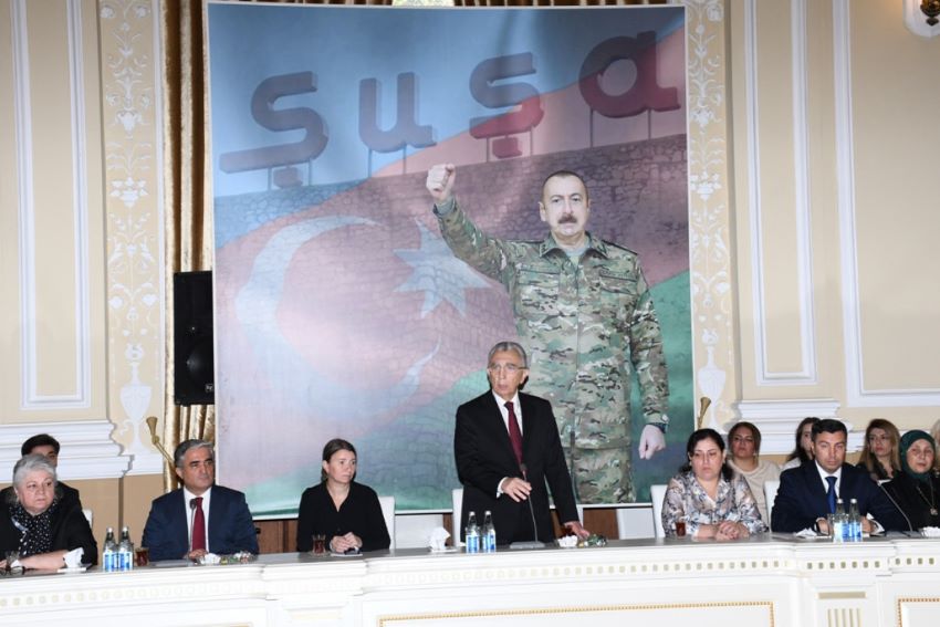 Bakı Şəhər İcra Hakimiyyətinin başçısı Eldar Əzizov qonaqları salamlayaraq bildirib ki, 5 il əvvəl sentyabrın 27-də başlayan 44 günlük Vətən müharibəsində ölkəmiz düşmən üzərində şanlı Qələbə qazandı. Prezident İlham Əliyevin dahi sərkərdəliyi ilə son 200 il ərzində ilk dəfə olaraq müsəlman dövləti düşmən üzərində qələbə qazanaraq öz torpaqlarını geri qaytardı. Bu tarixi nailiyyət məhz ölkə başçısı İlham Əliyevin şəxsiyyət faktoru sayəsində mümkün oldu.