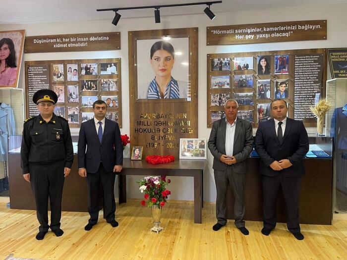 İcra başçısı Azər Qocayev Milli Qəhrəman Hökümə Əliyevanın ailə üzvləri ilə görüşüb, Hökümə Əliyevanın qorxmazlığından, ölümlə üz-üzə olduğu halda vəzifəsini ləyaqətlə, mərdliklə yerinə yetirməsindən söz açaraq, Milli Qəhrəmanımıza Allahdan rəhmət diləyib. Sonra Milli Qəhrəman Hökümə Əliyevanın şəxsi əşyalarına baxış keçirilib, onun fəaliyyətinə bir daha nəzər salınıb.