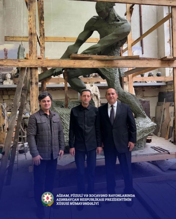 Azərbaycan Prezidentinin Ağdam, Füzuli və Xocavənd rayonları üzrə xüsusi nümayəndəsi Emin Hüseynov "Fərhadın heykəli"nin hazırlanması prosesi ilə tanış olub.