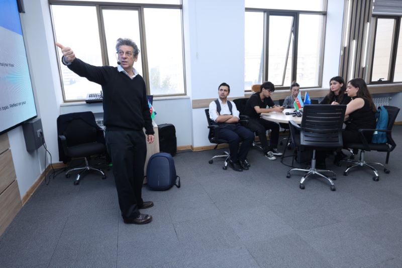 Təlim proqramının son günündə “Müsahibə” mövzusunda sessiya keçən “Euronews”un Avropa İttifaqı üzrə baş müxbiri Sergio Kantone müsahibənin strukturu, sualların düzgün formalaşdırılması, süjetin montaj olunma qaydaları barədə ətraflı məlumat verib. Bununla yanaşı, sualvermə texnikası, diqqətli dinləmə, mövzuya çevik reaksiya və efir davranışı kimi bacarıqlar haqqında fikir mübadiləsi aparılıb.