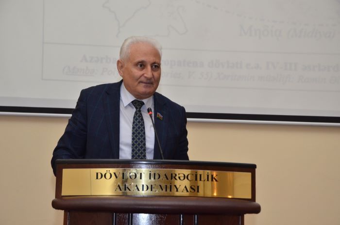 Seminarın əsas məruzəçisi AMEA A.A.Bakıxanov adına Tarix və Etnologiya İnstitutunun böyük elmi işçisi Ramin Əlizadə “Qərbi Azərbaycan mixiyazılı mənbələrdə” mövzusunda geniş elmi araşdırma ilə çıxış edib. O, məruzəsində mixiyazının yaranması və Qafqaz regionunda yayılması, Urartu mənbələrində Qərbi Azərbaycan, Assuriya-Babil yazılarında Azərbaycan izləri, Midiya və Əhəməni mixiyazılı kitabələri, Qərbi Azərbaycanla bağlı yeni elmi faktlar haqqında danışıb. Qeyd edib ki, mixiyazılı mənbələrin analizi Qərbi Azərbaycan tarixinin dərin köklərə malik olduğunu sübut etməklə yanaşı, bölgədə azərbaycanlıların qədim etnomədəni varlığının danılmaz elmi əsaslarını ortaya qoyur. Bu istiqamətdə aparılan tədqiqatlar yalnız tarixi həqiqətlərin bərpası deyil, həm də müasir dövr üçün strateji əhəmiyyət daşıyır. (AZƏRTAC)