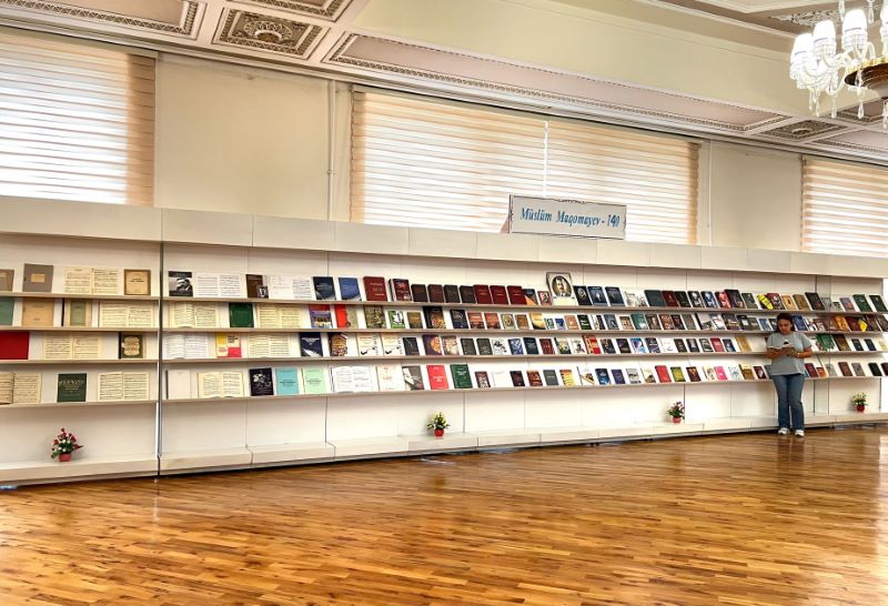 Kitabxanadan bildirilib ki, sərgidə dahi bəstəkar Müslüm Maqomayevin əsərləri, operaları, həyatı və yaradıcılığı, Azərbaycan musiqisinin inkişafında müstəsna xidmətləri və s. haqqında Azərbaycan və xarici dillərdə ədəbiyyatlar, not məcmuələri, dövri mətbuat materialları nümayiş olunur.