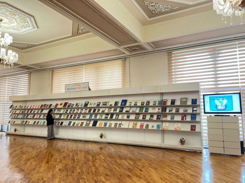 Ənənəvi sərgidə Ulu Öndər Heydər Əliyevin sülh strategiyası, inkişaf və sülh ideyaları, Prezident İlham Əliyevin sülh missiyası, ümumdünya sülh və inkişaf konsepsiyası, sülh, əmin-amanlıq, təhlükəsizlik, sabitlik və demokratiya və s. haqqında Azərbaycan və xarici dillərdə ədəbiyyatlar nümayiş olunur. (AZƏRTAC)