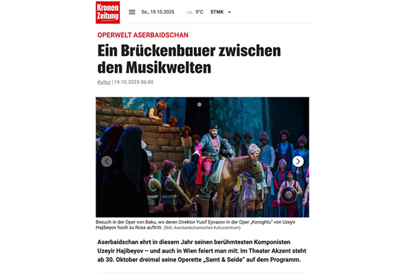 Üzeyir Hacıbəylinin həyat və yaradıcılığının önəmli məqamlarından bəhs olunan məqalədə bəstəkarın ən məşhur əsərləri sırasında yer alan "Arşın mal alan"dan da yazılıb. Bildirilib ki, OdlarYurdunun zəngin mədəni müxtəlifliyi ilə yaxından tanış olmaq istəyənlər bu ayın sonunda Vyananın mərkəzində yerləşən "Akzent" teatrında alman dilində təqdim olunacaq bu musiqili komediyanı seyr etmək fürsətini qaçırmamalıdırlar.