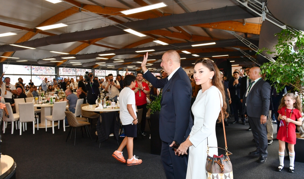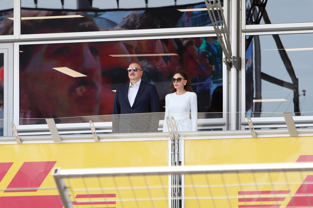 Azərbaycan Respublikasının Prezidenti İlham Əliyev, birinci xanım Mehriban Əliyeva və ailə üzvləri yarışa baxıblar.