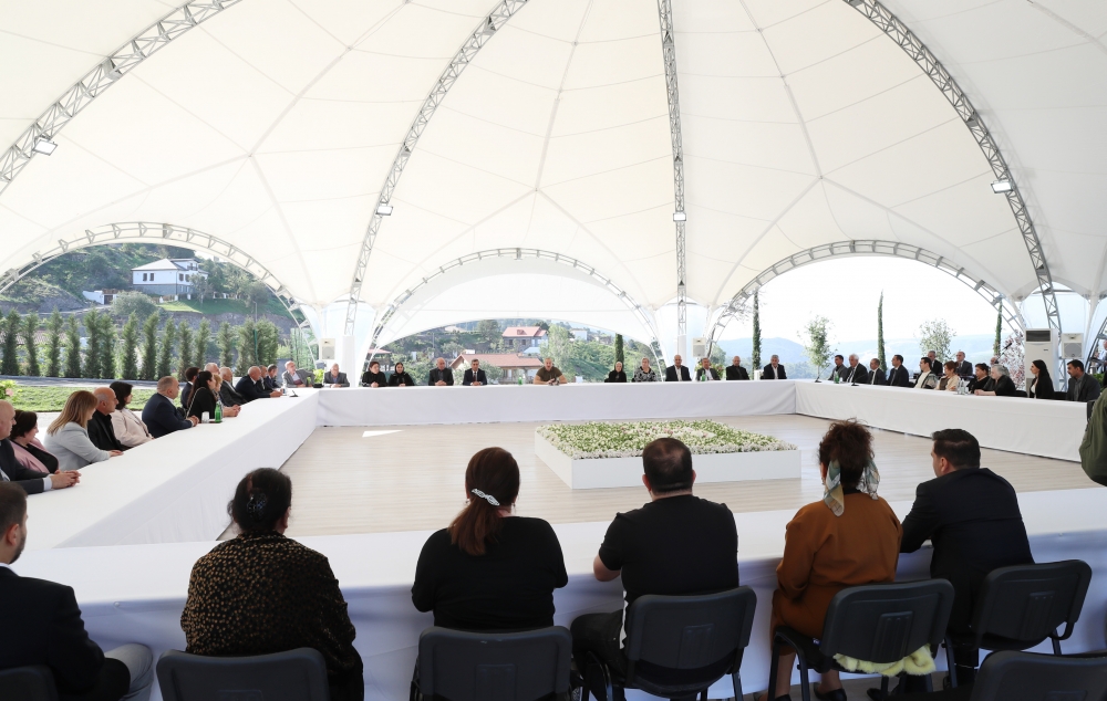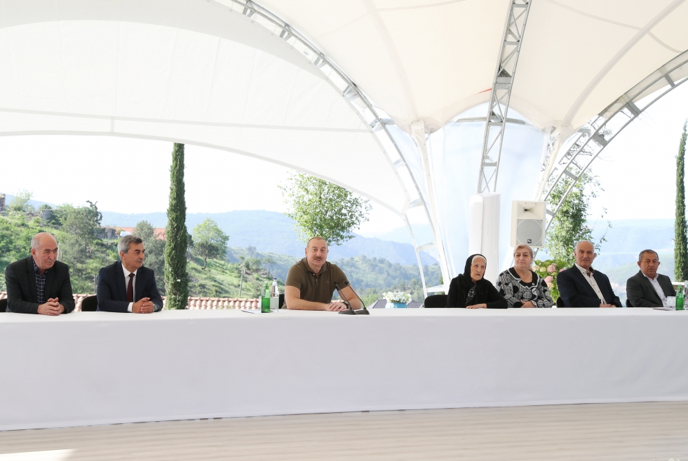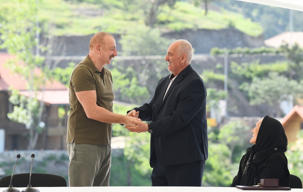 Sonra dövlətimizin başçısı Laçın şəhərinə qayıdan əhali ilə görüşüb, evlərin açarlarını onlara təqdim edib.