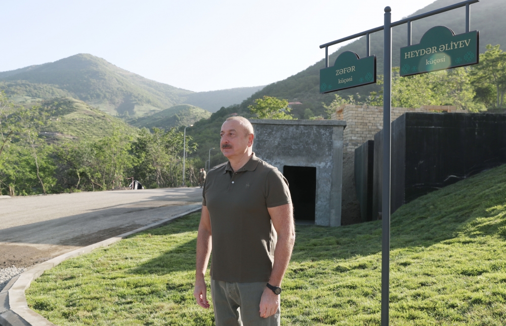 Daha sonra Prezident İlham Əliyevə Laçın şəhərinin Baş planı təqdim olunub. Dövlətimizin başçısı “İşğal” və “Zəfər” muzeylərinin, Laçın şəhərində ilk çoxmənzilli yaşayış məhəlləsinin təməllərini qoyub, son tamamlanma işləri aparılan idman kompleksi ilə tanış olub, ölkəmizdə reintroduksiya layihələrinin həyata keçirilməsi çərçivəsində Laçın rayonunun ərazisinə Şərqi Qafqaz turlarının və şahin quşlarının təbiətə, həmçinin işğaldan azad olunmuş ərazilərdə su ekosisteminin bərpası istiqamətində 32 mindən artıq çəki, qızılbalıq və qızılxallı forelin Həkəri çayına buraxılması mərasimində iştirak edib, sakinlərin və turistlərin istirahəti üçün nəzərdə tutulan kottec tipli evlərin inşası ilə tanış olub.