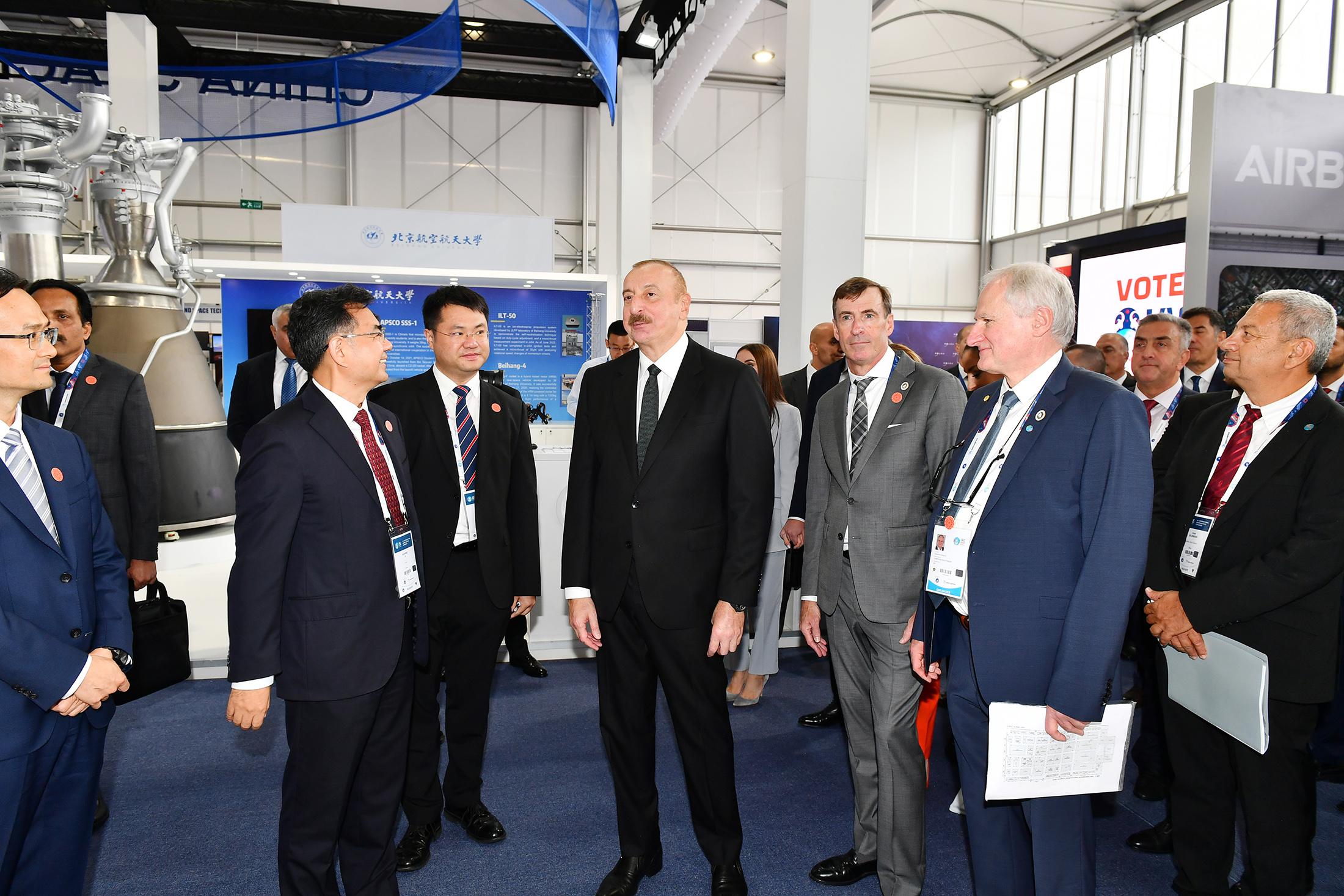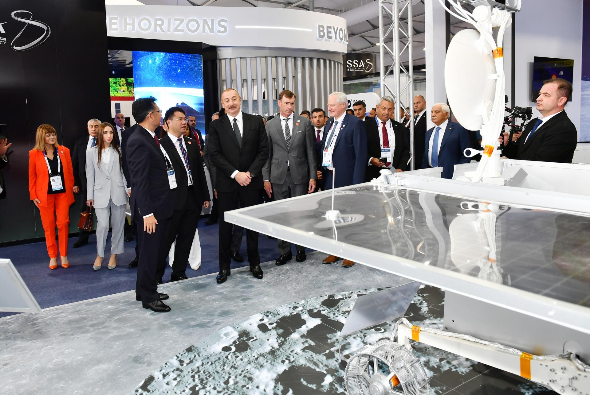 Dövlətimizin başçısı və birinci xanım Türk Kosmik Agentliyinin, Səudiyyə Ərəbistanının Kosmik Agentliyinin, ABŞ-ın Milli Aeronavtika və Kosmos Administrasiyasının (NASA), Hindistanın Kosmik Tədqiqatlar Təşkilatının, “Israel Aerospace Industries” şirkətinin, İtaliyanın Aeronavtika və Astronavtika Assosiasiyasının, Çinin Astronavtika Cəmiyyətinin və digər şirkətlərin stendlərinə baxdılar.