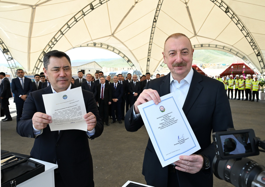 Azərbaycan və Qırğızıstan prezidentləri Ağdamın Xıdırlı kənd tam orta məktəbinin təməlqoyma mərasimində iştirak ediblər