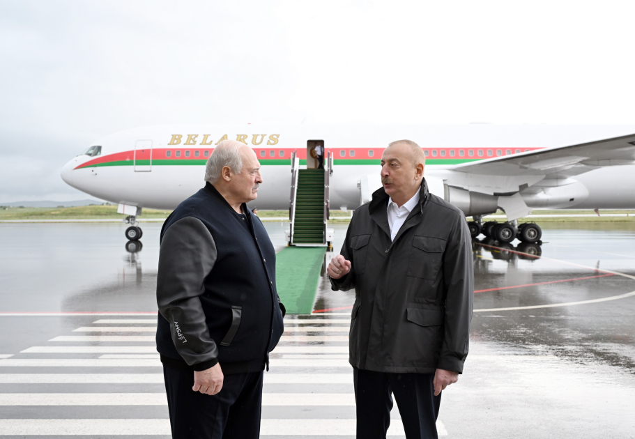 Belarus Respublikasının Prezidenti Aleksandr Lukaşenkonu Azərbaycan Respublikasının Prezidenti İlham Əliyev qarşıladı.