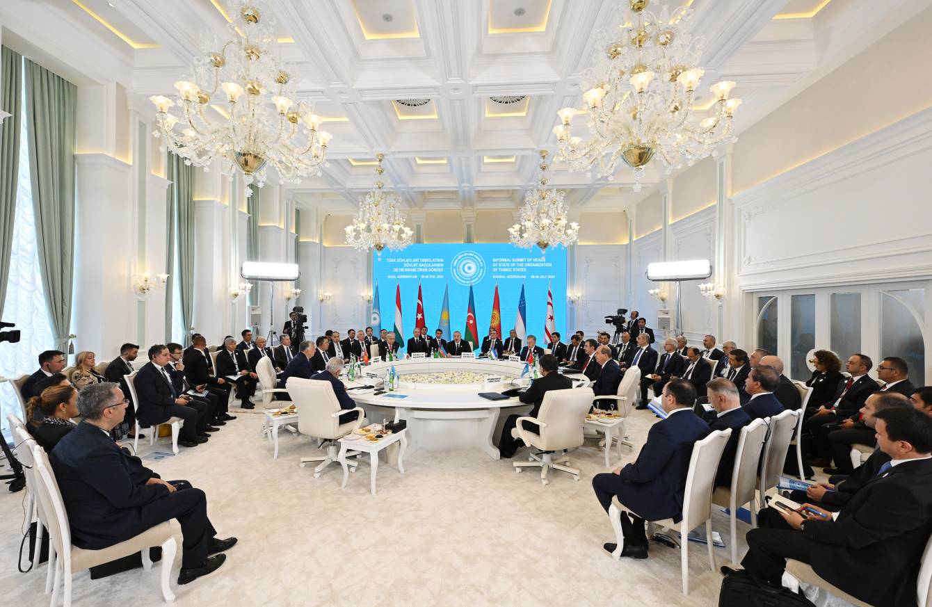 Türk Dövlətləri Təşkilatının Baş katibi Kubanıçbek Ömüralıyev Azərbaycanın təşkilatın inkişafına verdiyi töhfəni vurğuladı və COP29-un ölkəmizdə keçirilməsi münasibətilə təbriklərini çatdıraraq dedi: “Mən, ilk növbədə, Naxçıvan Sazişinin 15 illiyi ilə əlaqədar İlham Heydər oğlu Əliyevə dərin minnətdarlığımı bildirmək istərdim. Təsadüf elə gətirib ki, Şuşa “Türk dünyasının mədəniyyət paytaxtı” elan edilib və bu görüşü burada keçirməyimiz rəmzi məna kəsb edir”.