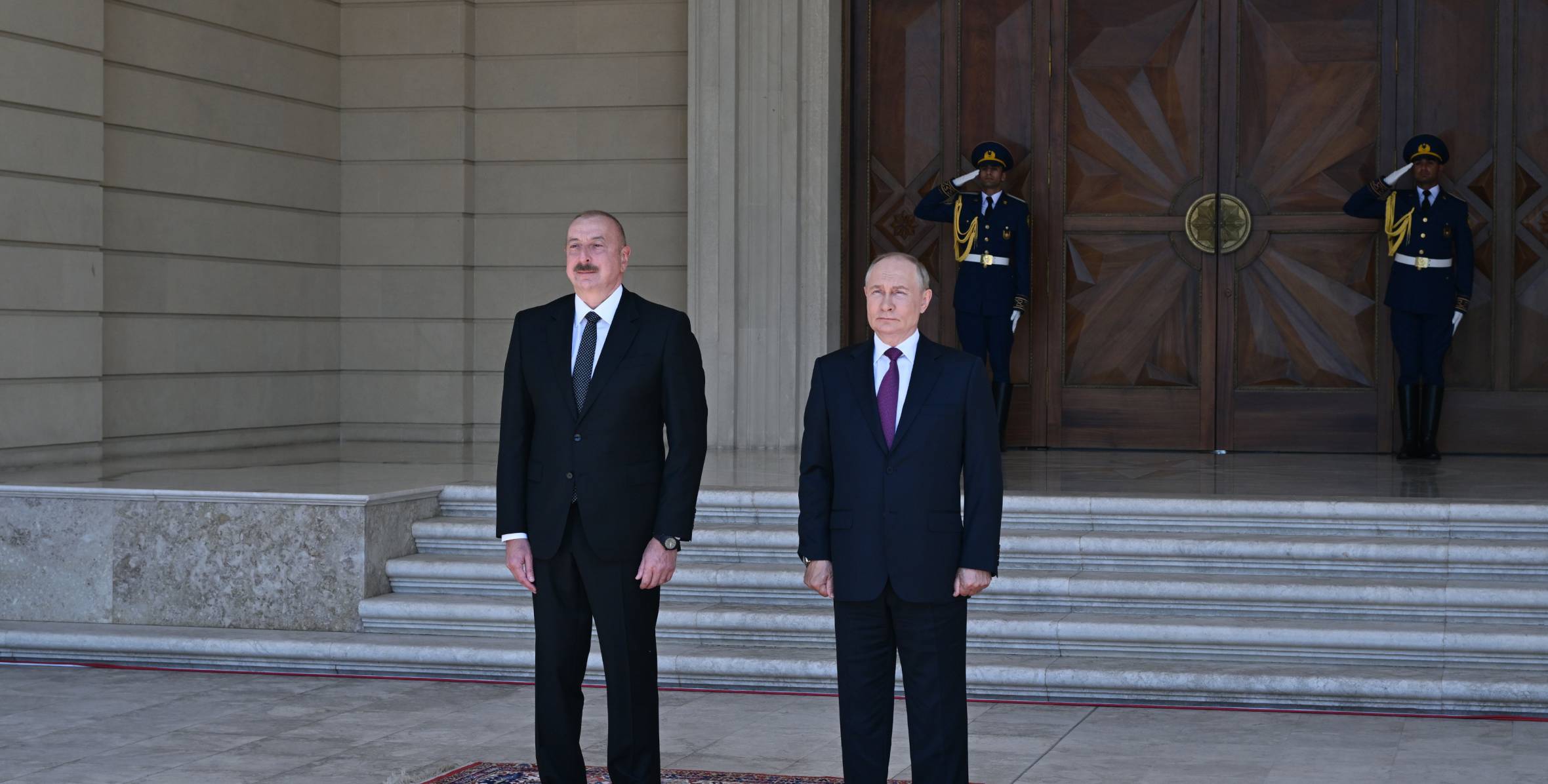 Hər iki ölkənin Dövlət bayraqlarının dalğalandığı meydanda Rusiya Prezidentinin şərəfinə fəxri qarovul dəstəsi düzülmüşdü.