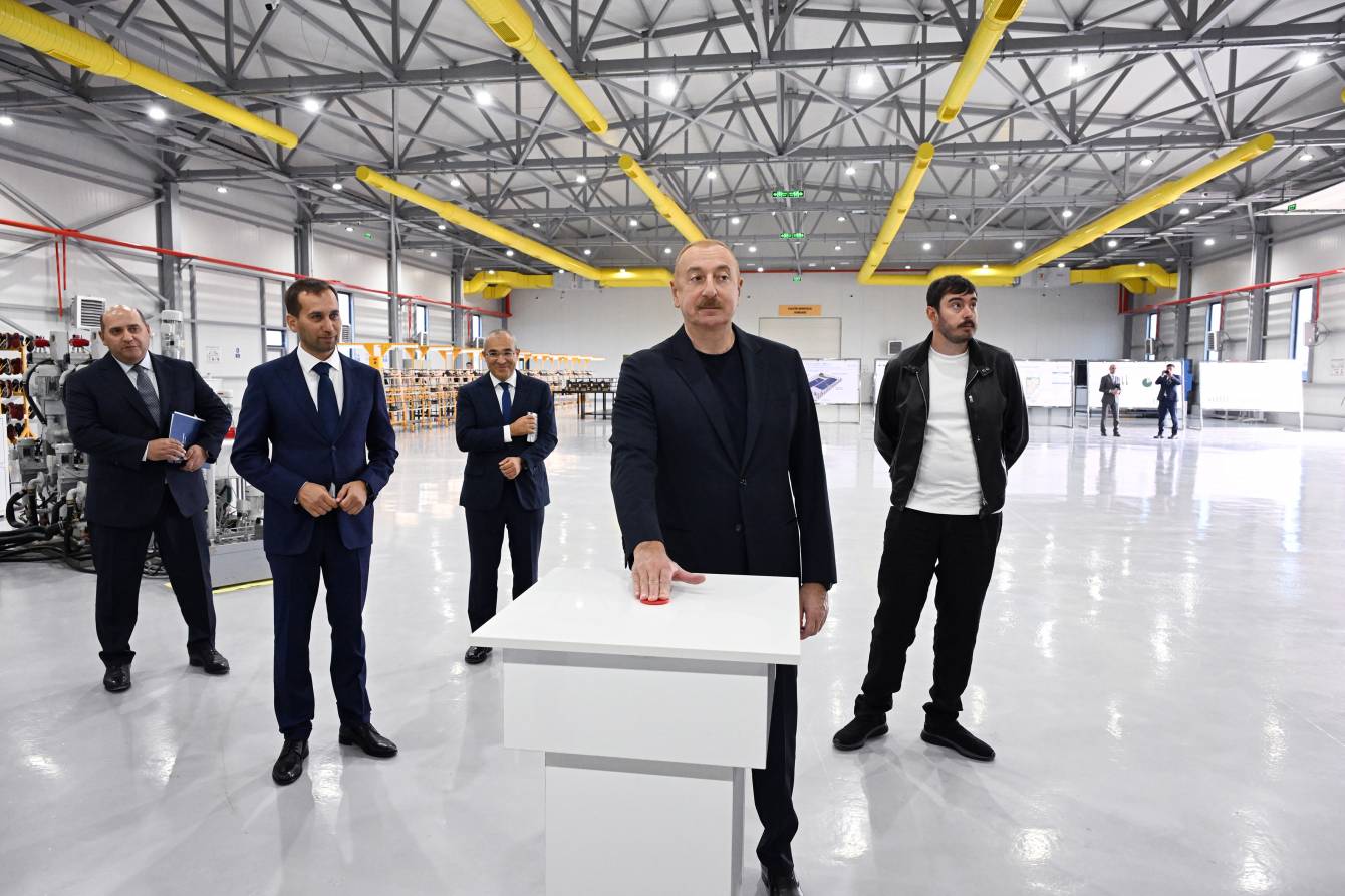 Prezident İlham Əliyev zavodu işə saldı.