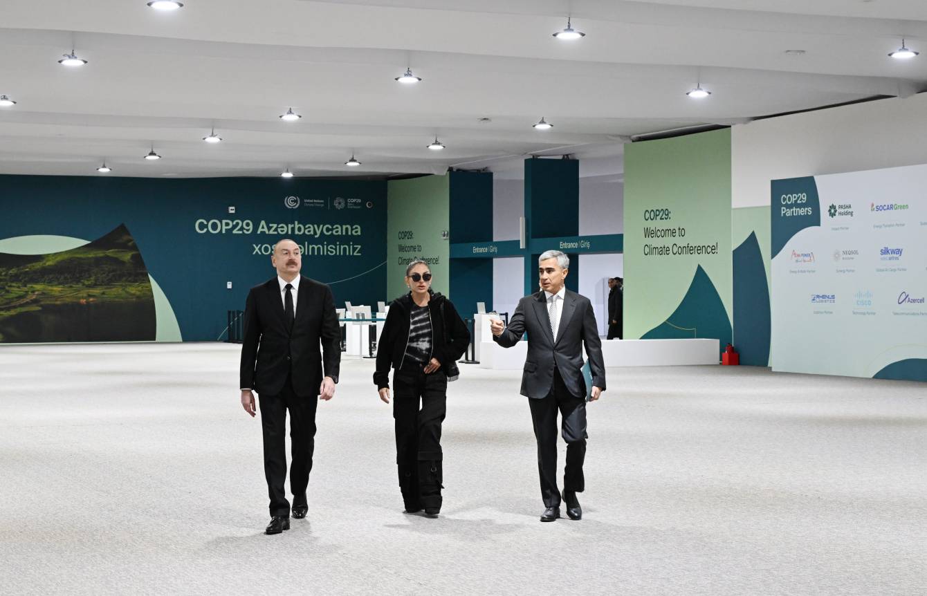 Dövlətimizin başçısı və birinci xanım COP29-un rəsmi Mavi Zonasında açılış mərasimində Milli bəyanatların səsləndiriləcəyi “Nizami” Plenar İclas zalı, İqlim Fəaliyyəti üzrə Dünya Liderlərinin Sammiti üçün hazırlanan məkanlar, eləcə də rəsmi danışıqların aparılacağı sahələrdə təşkil edilən çoxfunksiyalı müxtəlif görüş otaqları ilə tanış olublar. Qeyd edilib ki, burada Azərbaycanın mədəniyyəti və təbiətini təbliğ edən müxtəlif ekspozisiya və sərgilər var. Bildirilib ki, BMT-nin İqlim Dəyişmələri üzrə Çərçivə Konvensiyasına yaxın günlərdə təhvil veriləcək Mavi Zonada hazırda COP29 çərçivəsində pre-sessiya görüşləri keçirilir.