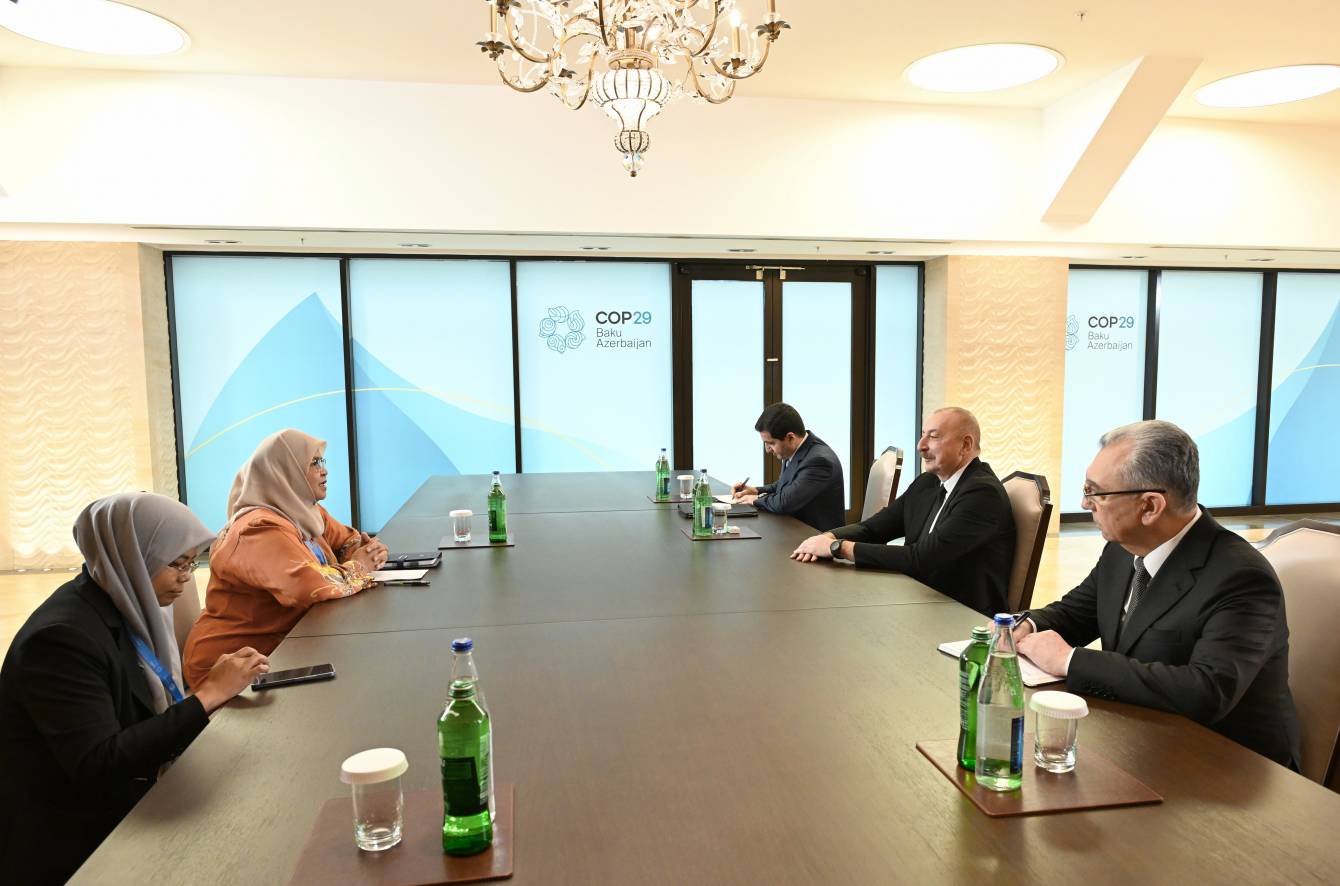 Maimuna Mohd Şərif Prezident İlham Əliyevə COP29-da yerli icmalar statusunda Kuala Lumpur şəhərinin meri kimi çıxış etməsinə yaradılan imkana və COP29-da Azərbaycanın Sədrliyi yanında yaradılmış Məşvərət Şurasına daxil edilməsinə görə Prezident İlham Əliyevə minnətdarlığını bildirdi.
