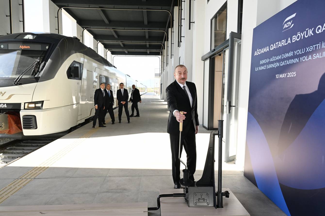 Sonra Bərdə-Ağdam dəmir yolu xətti ilə ilk rəmzi sərnişin qatarı yola salındı.