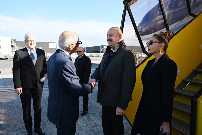 Kopenhagen şəhərinin beynəlxalq aeroportunda Prezident İlham Əliyevi və birinci xanım Mehriban Əliyevanı rəsmi şəxslər qarşılayıblar. (AZƏRTAC)