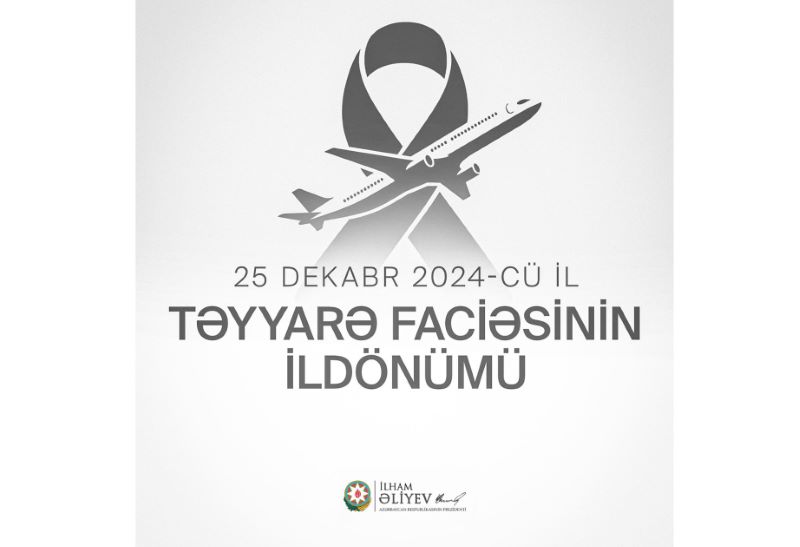 Azərbaycan Prezidenti İlham Əliyev “Azərbaycan Hava Yolları” Qapalı Səhmdar Cəmiyyətinə məxsus “Embraer 190” təyyarəsinin qəzaya uğramasının birinci ildönümü ilə bağlı sosial media hesablarında paylaşım edib.