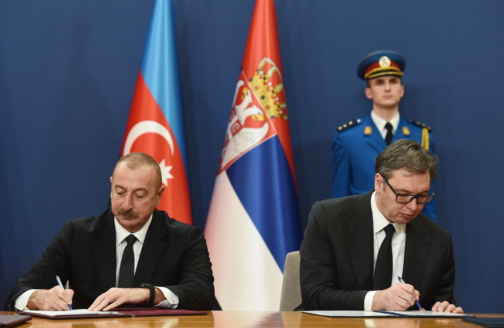 Azərbaycan Respublikasının Prezidenti İlham Əliyev və Serbiya Respublikasının Prezidenti Aleksandar Vuçiç “Azərbaycan Respublikası Prezidenti ilə Serbiya Respublikası Prezidenti arasında Birgə Bəyanat”ı, “Azərbaycan Respublikası və Serbiya Respublikası arasında Strateji Tərəfdaşlıq Şurasının yaradılması haqqında Memorandum”u və onun əlavəsi olan “Azərbaycan Respublikası və Serbiya Respublikası arasında Strateji Tərəfdaşlıq Şurasının Əsasnaməsi”ni imzaladılar.