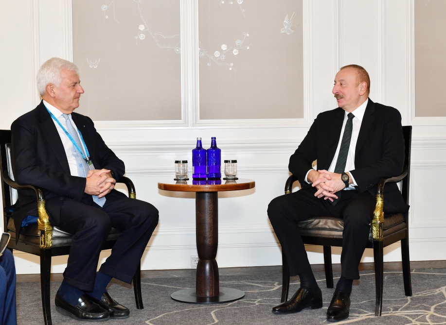 Görüşdə Prezident İlham Əliyev Azərbaycan ilə İtaliya arasında strateji tərəfdaşlıq münasibətlərinin olduğunu qeyd etdi, İtaliyaya dövlət və rəsmi səfərlərini məmnunluqla xatırladı.