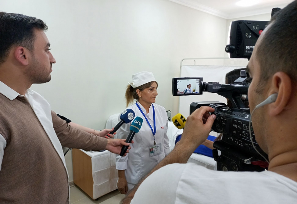 Müdafiə Nazirliyinin mətbuat xidmətindən bildirilib ki, kütləvi-informasiya vasitələrinin nümayəndələri həmin ərazilərdəki tibb müəssisələrində yaradılan şəraitlə tanış olub, hərbi həkimlərin fəaliyyətini izləyib, çəkilişlər aparıb, həmçinin tibb personalı və müalicə olunan hərbçilərlə həmsöhbət olublar.