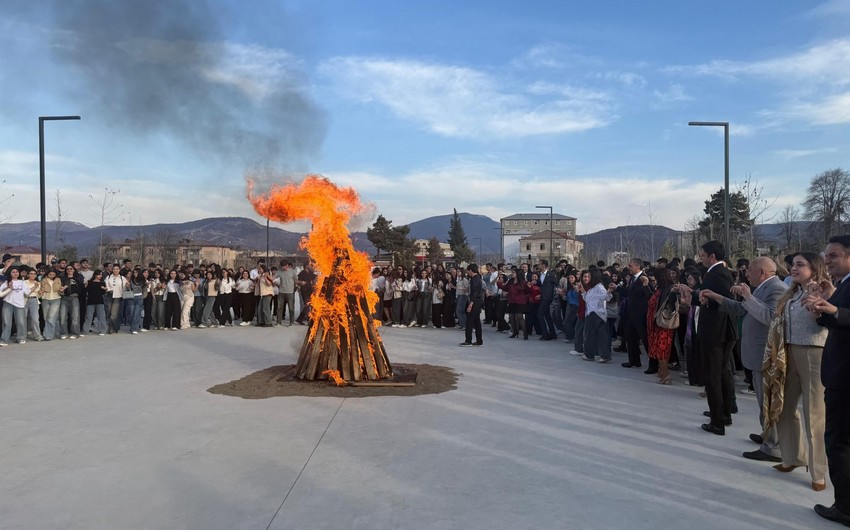 Sonda bayram tonqalının ətrafında universitetin müəllim və tələbə heyətinin iştirakı ilə yallı təşkil edilib. (Report)
