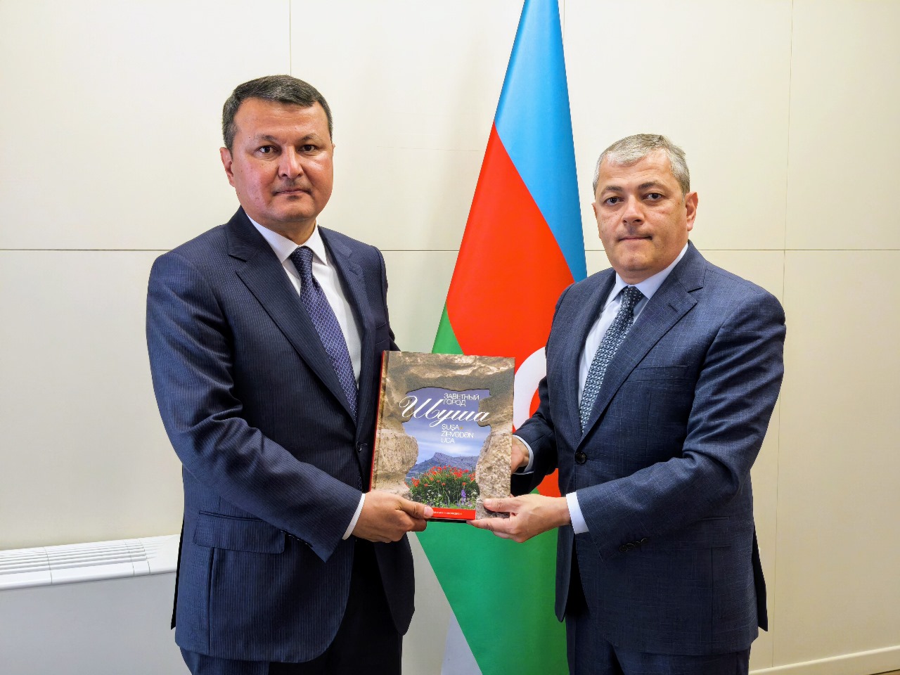 Səfər çərçivəsində Azərbaycan Respublikası Prezidentinin Şuşa rayonunda xüsusi nümayəndəsi Aydın Kərimovla görüş olub. Görüşdə Şuşa şəhərinin tarixindən və görülən işlərdən danışılıb. Azərbaycan ilə Özbəkistan arasında hər bir sahədə əməkdaşlığın sürətlə inkişaf etdiyi vurğulanıb. Xivə ilə Şuşa şəhərləri arasında “qardaşlaşmış şəhər” əlaqələrinin praktiki səviyyədə genişləndirilməsi haqqında fikir mübadiləsi aparılıb. Diqqətə çatdırılıb ki, yeni inşaat işləri və infrastrukturla yanaşı, Şuşada şəhərin əsl tarixi simasının, tarix və mədəniyyət abidələrinin bərpasına da xüsusi fikir verilir. Nümayəndə heyəti aparılan sürətli bərpa və yenidənqurma işlərini yüksək qiymətləndiriblər və məmnunluqlarını dilə gətiriblər.